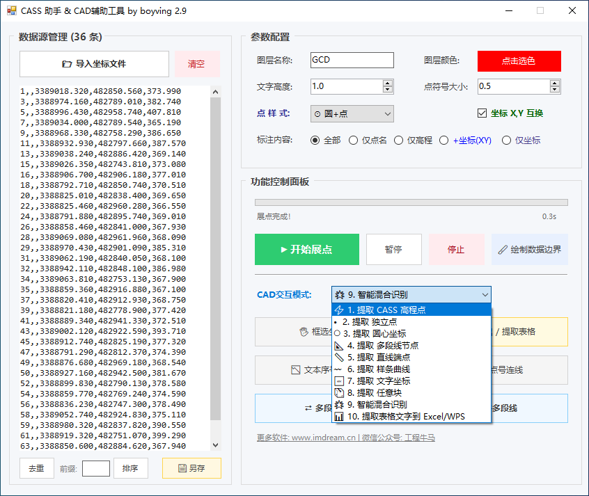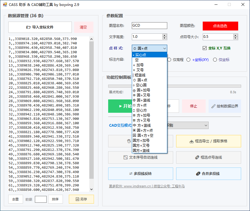 4、增加提取点、圆心、多段线、直线、任意块、样条曲线、文字坐标等。