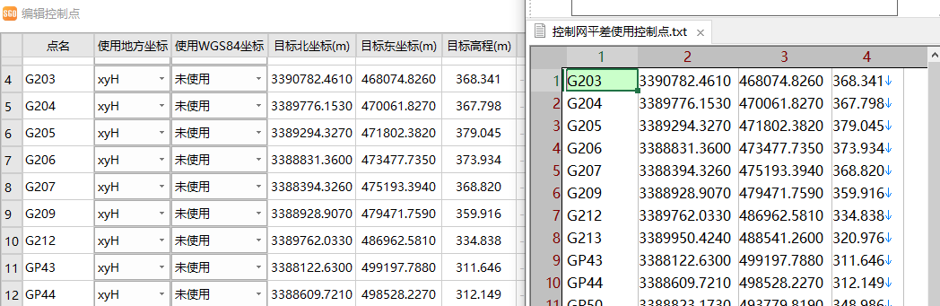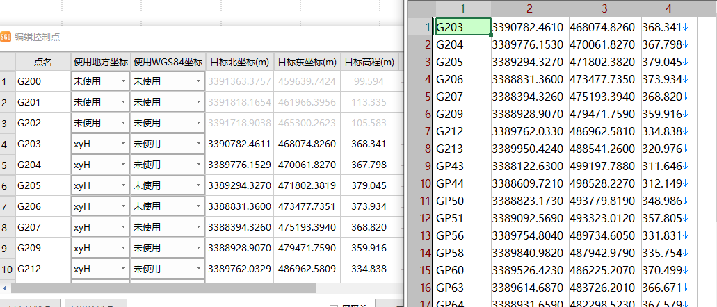 3、对比导入结果,发现小数位后面的3位小数,随机变化了。这个对于测量来说是不应出现的问题。我测试过很多方法,比如说把控制点补到4位小数,但是结果导入还是一样的会出现这个问题。那到底有没有解决方法呢。答案是肯定有的,不然我也不会写这篇文章了。
